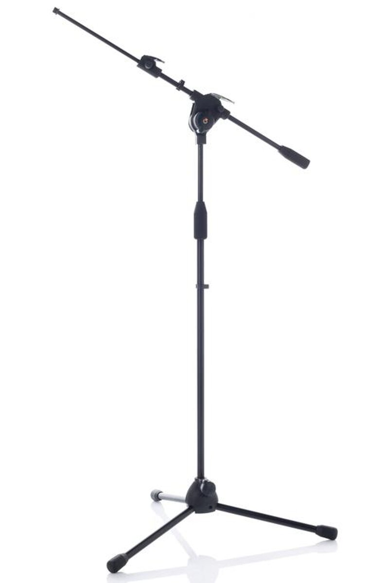 Asta microfonica a giraffa telescopica con comodi pulsanti in lega di zinco cromati con particolari in gomma che permettono la doppia regolazione in modo facile e veloce. Manopola centrale ergonomica rivestita in gomma. Snodo, contrappeso e base in nylon caricato. Piedini in gomma antivibrazioni